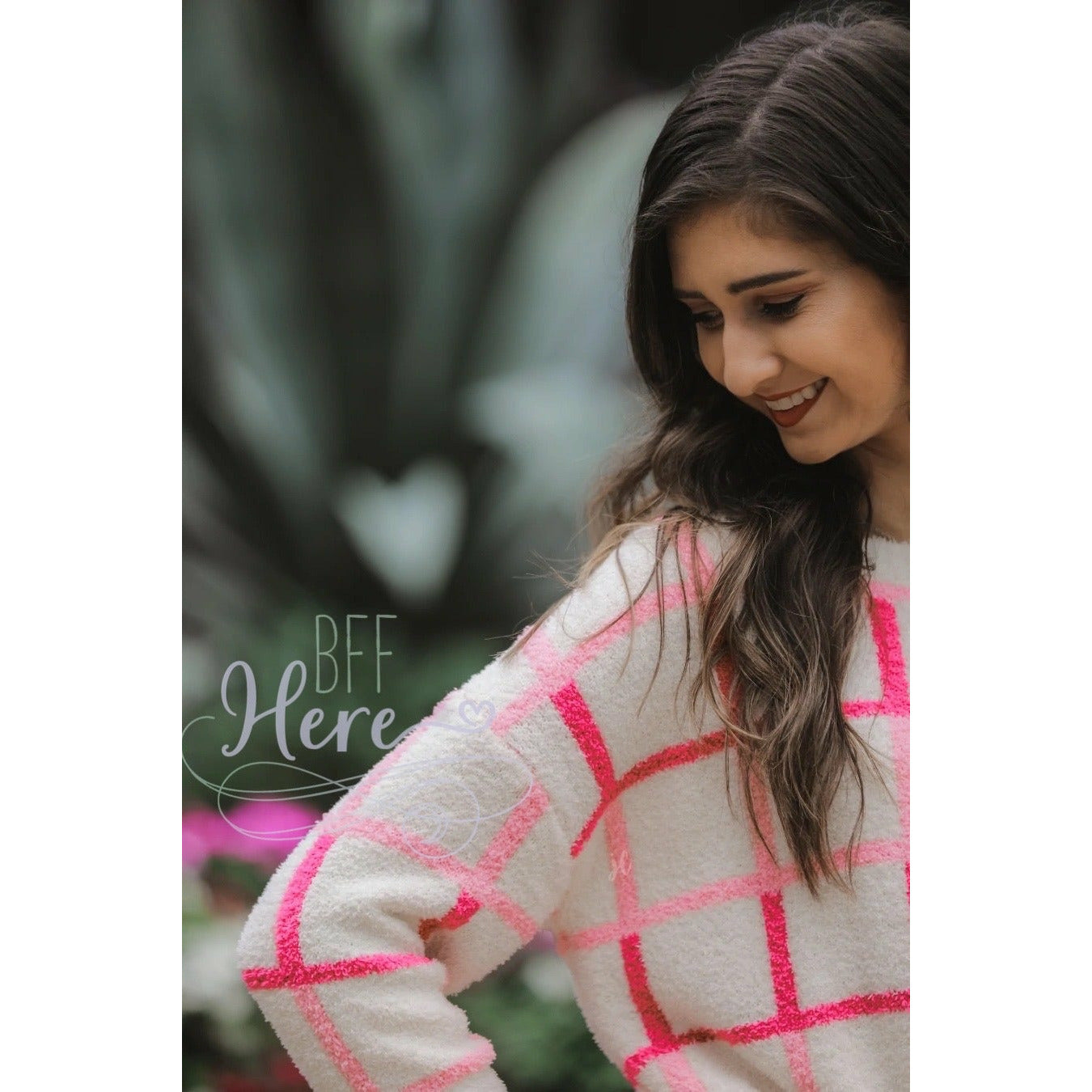How gorgeous is this ivory plaid sweater?! This sweater features a super soft material, a round neckline, and a red and pink plaid pattern. This sweater is perfect to throw on with your favorite pair of skinny jeans and booties.