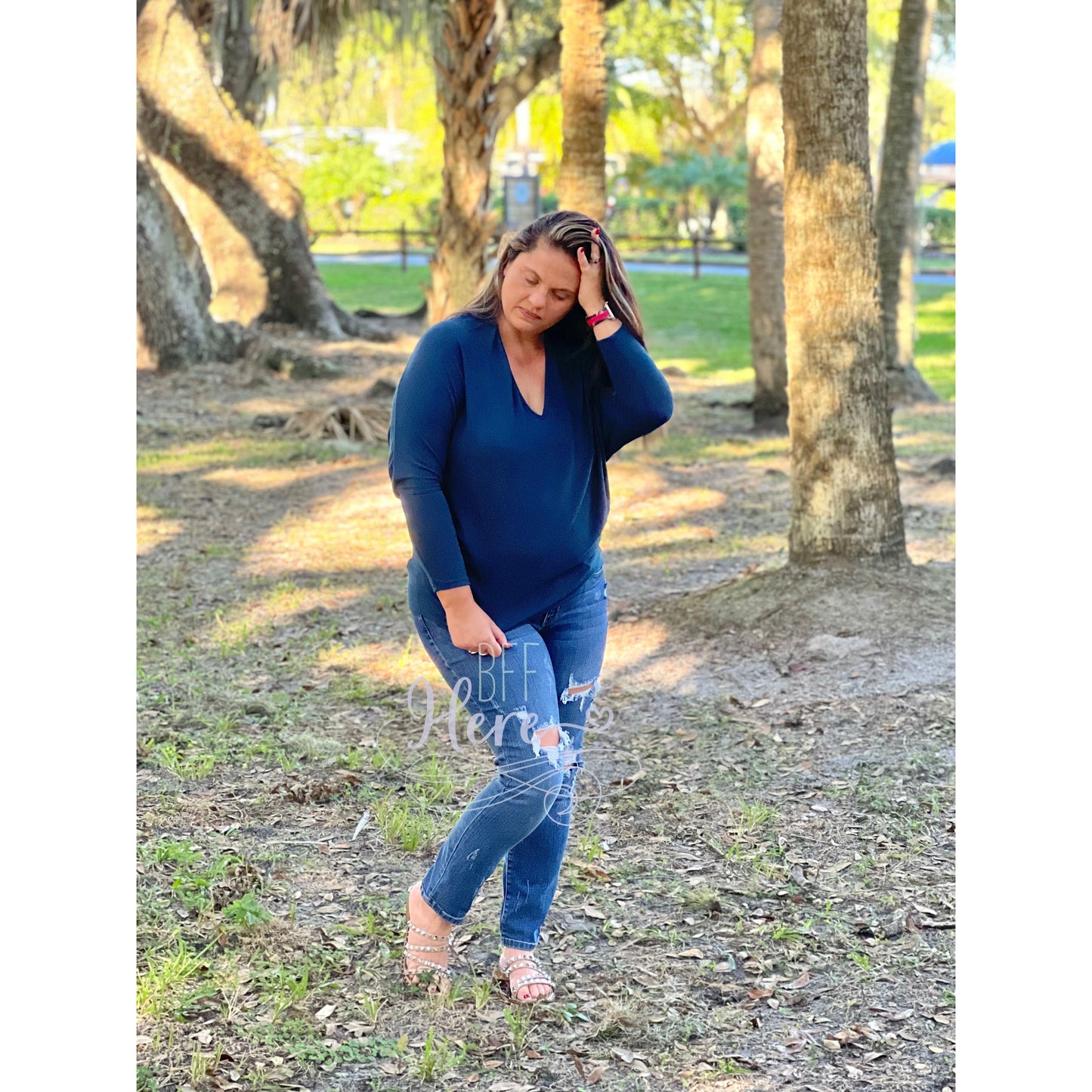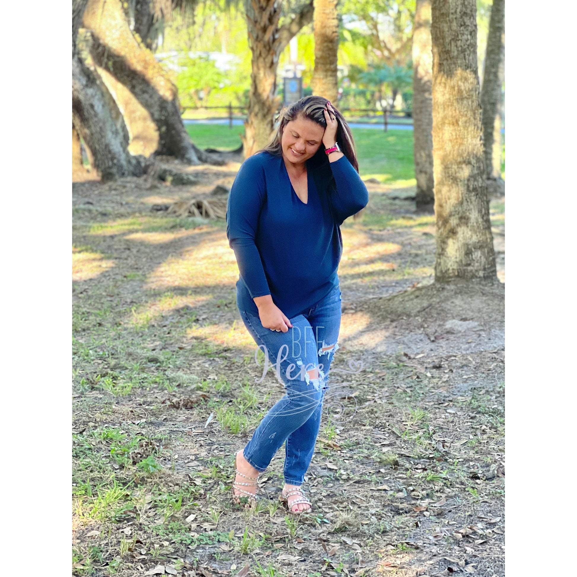 The top is the perfect neutral top with a twist! The Melanie Top is so comfy and a great addition to your closet! Pair it with your favorite bralette and jeans and you are good to go!