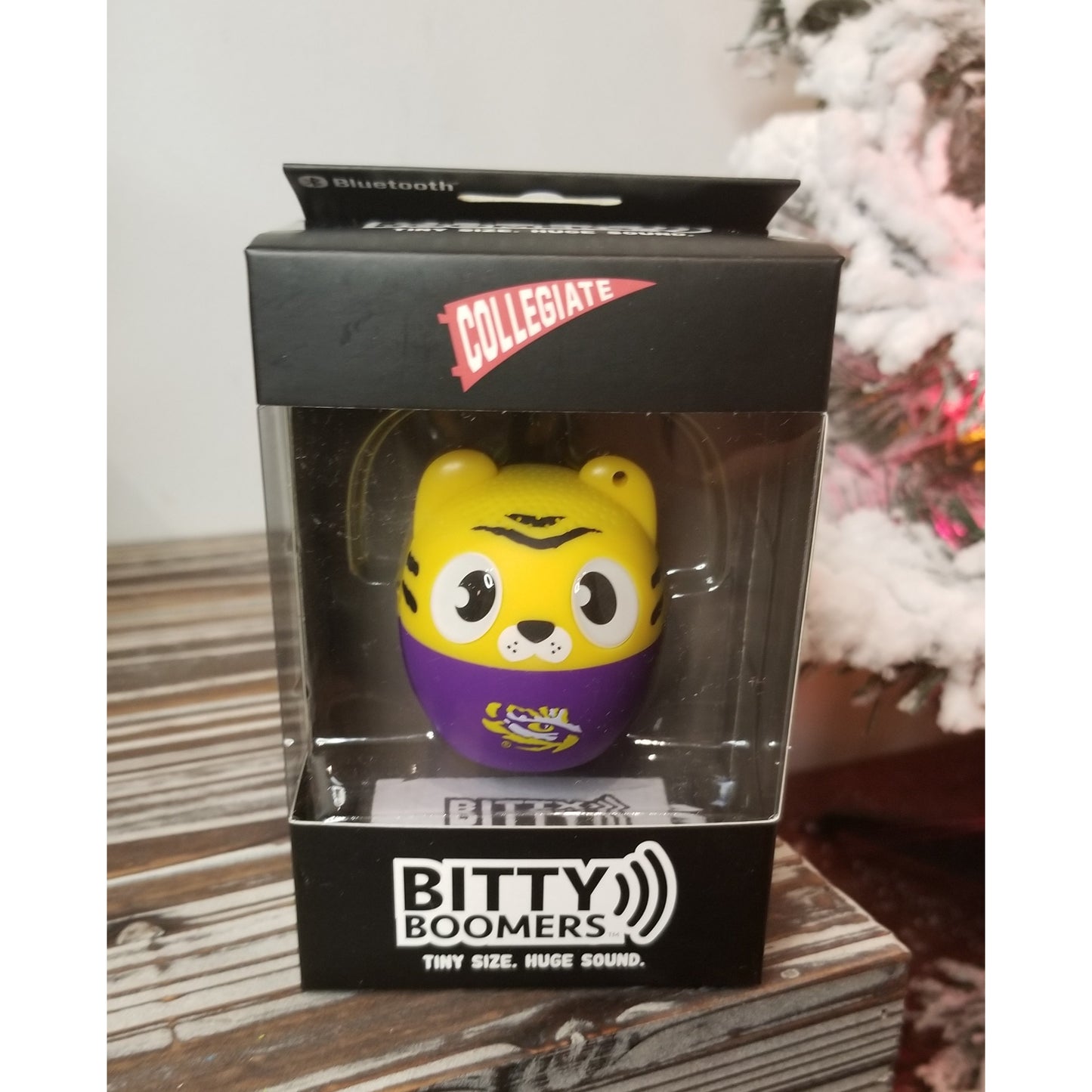 Bitty Boomers are just under 2" in height and weigh about .25 of a pound. They can be easily carried in a pocket, strapped to a backpack/gym bag.