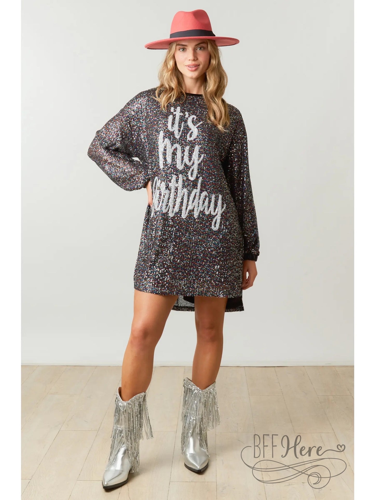Look your best in this PREORDER "It's My Birthday" Sequin Dress.