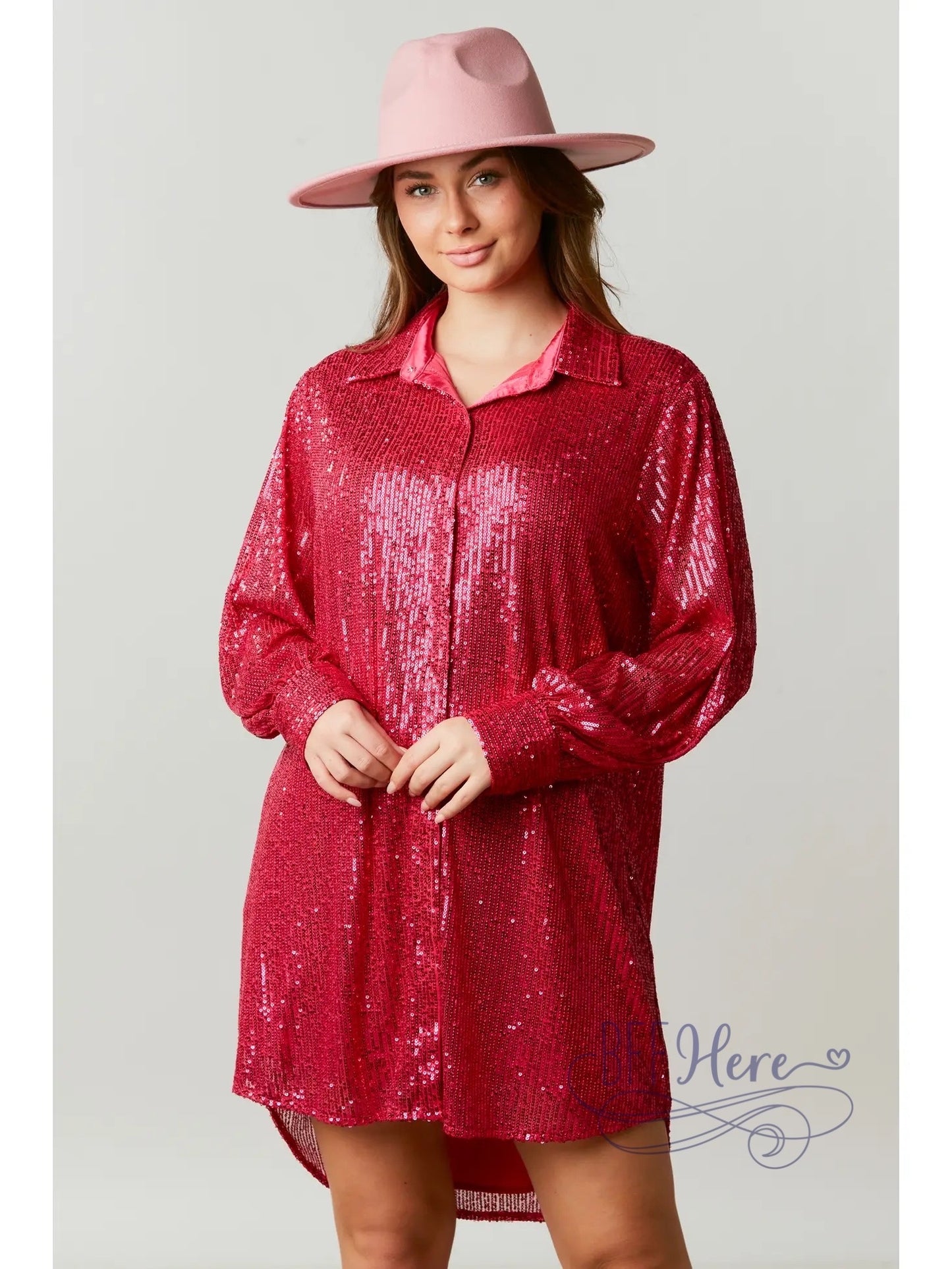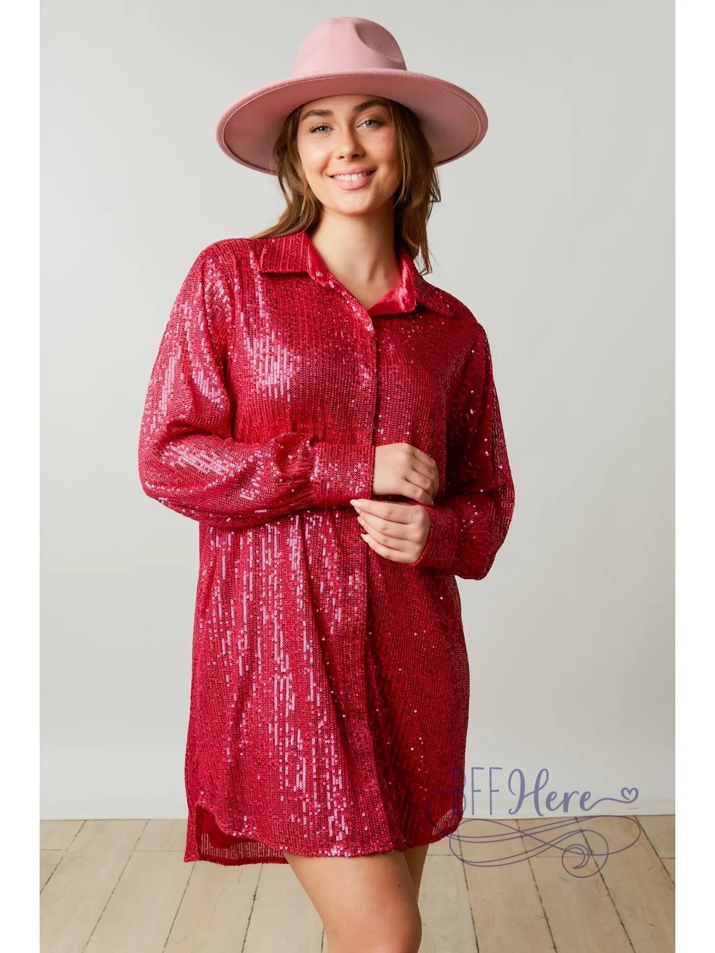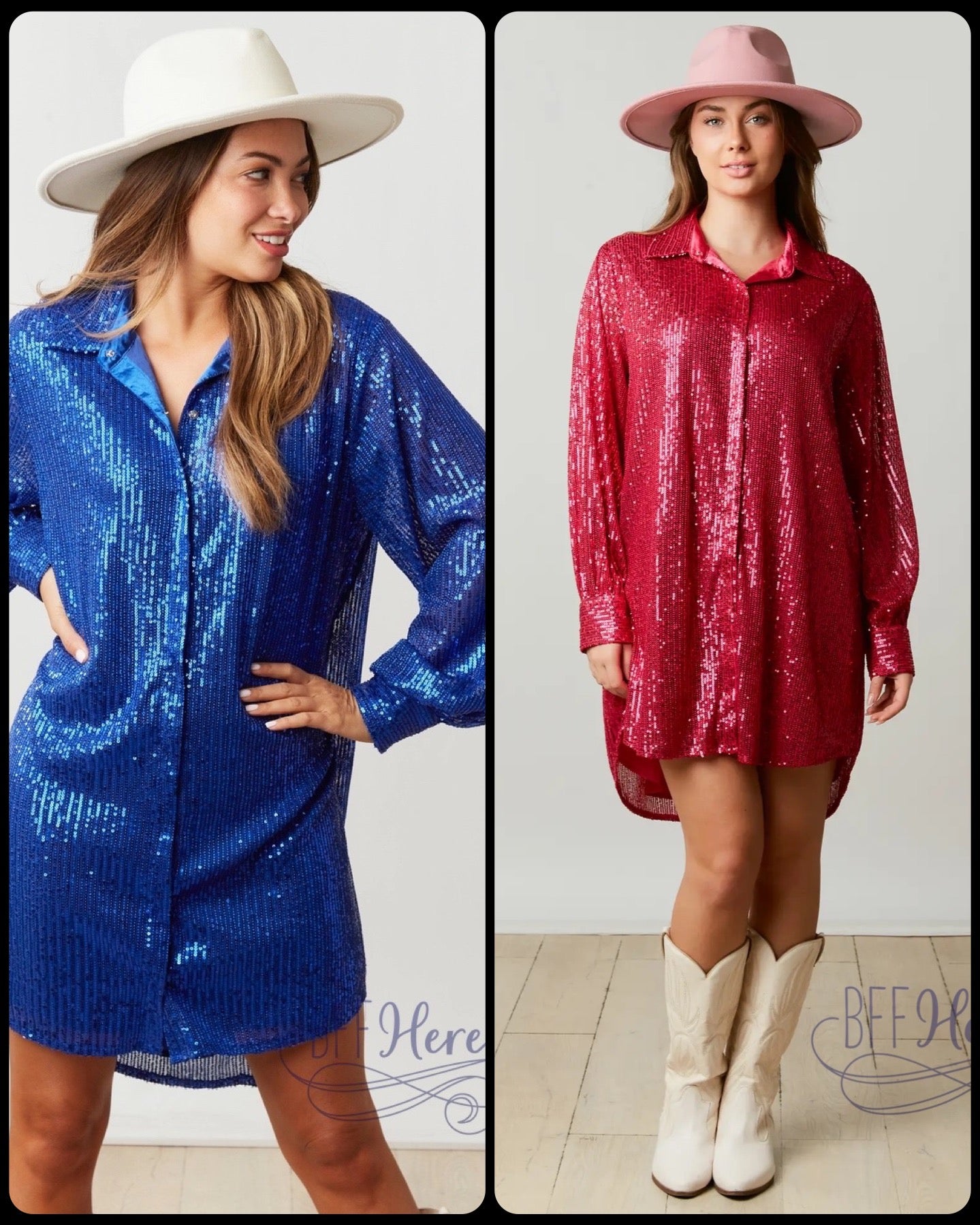 Shimmer & Shine: The Ultimate Sequin Shirt Dress for Showstopping Elegance / Choice of Color
