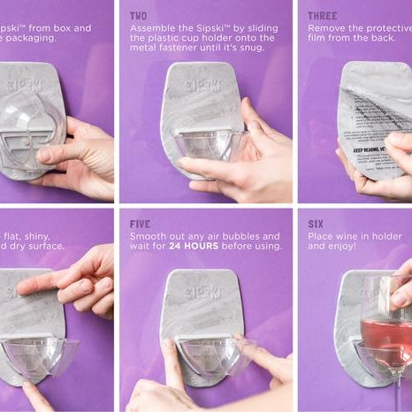 No suction cups, adhesives, or wall mounts are needed, and it won’t leave any residue behind. The silicone wine holder securely grips to glossy surfaces like glass, mirror, marble, metal, shiny tile, and laminate using a patented grip technology.