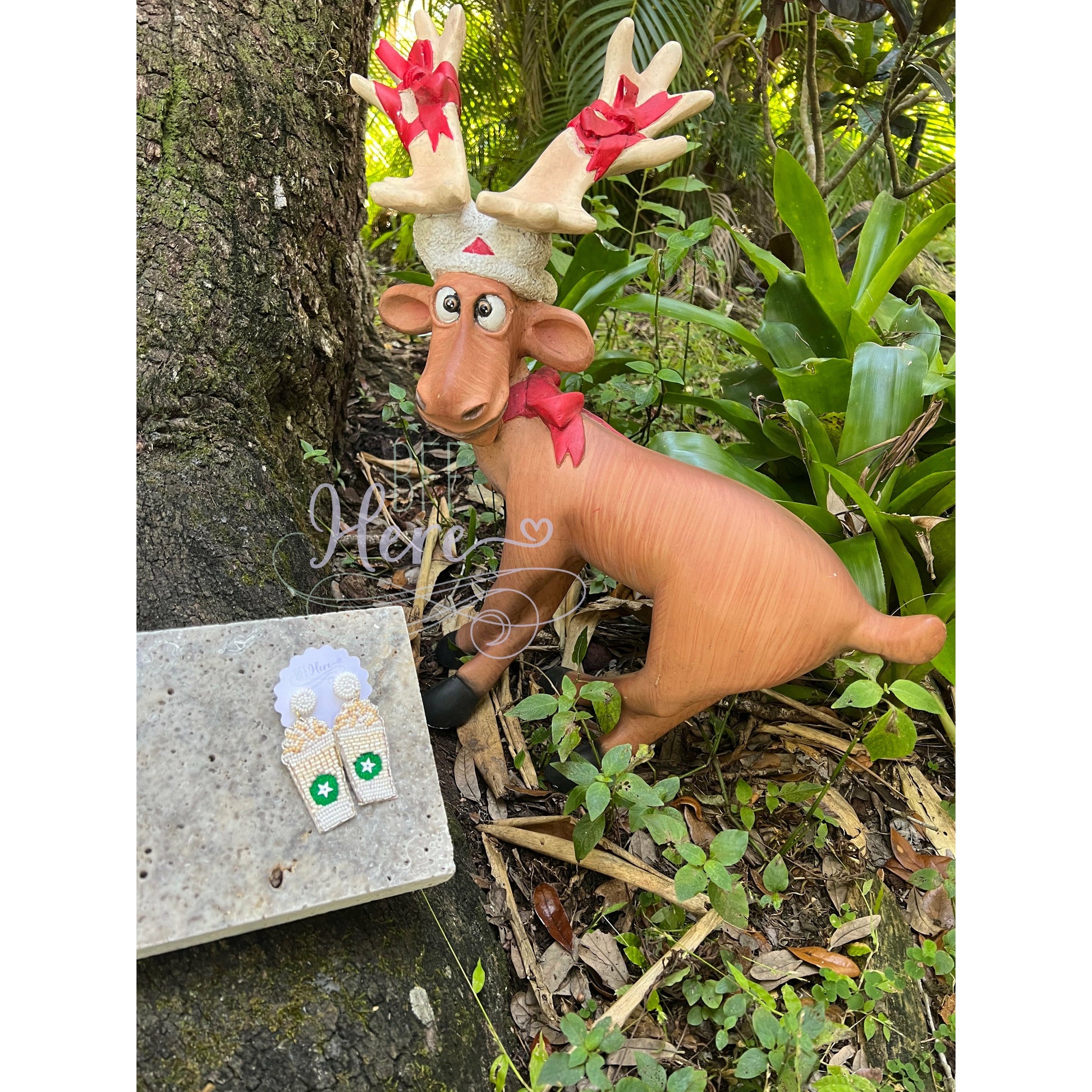 White Frappe Beaded Dangle Earrings