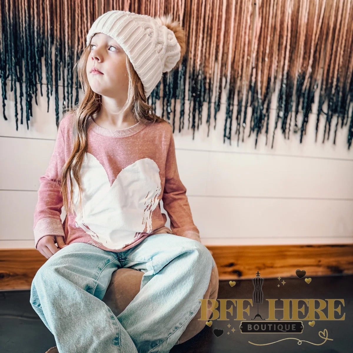 Spread the love with our YOUTH White Glitter Heart French Terry top! Perfect for Valentine's Day or any day you want to match your one true love (hey, mama). Made of soft French Terry, featuring a sparkly white heart design. XOXO!