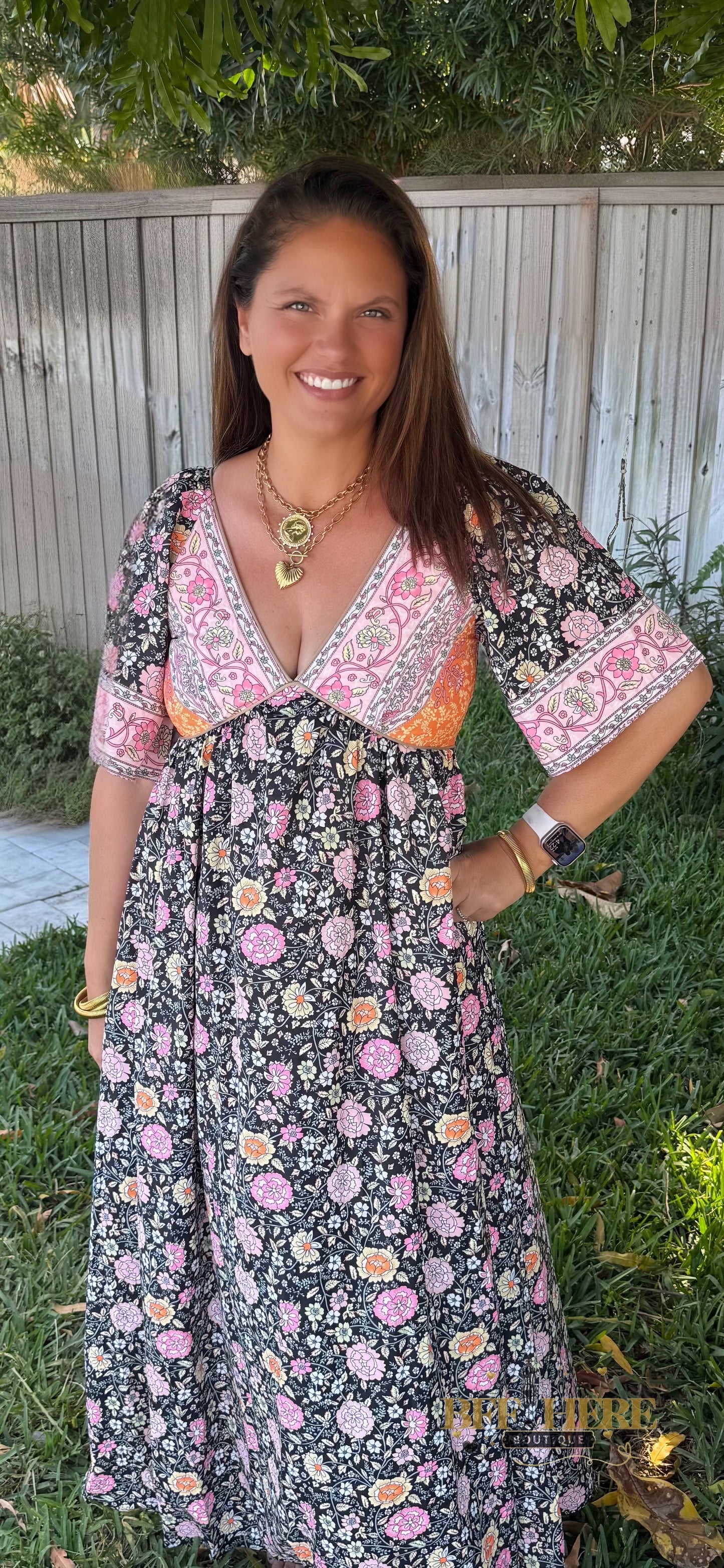 Flowy, feminine, and effortlessly chic, the Wildflower Breeze Boho Maxi Dress is perfect for any free-spirited fashionista. Designed with a vibrant floral print on a lightweight 100% polyester fabric, this dress offers both comfort and style. The empire waist and relaxed fit create a flattering silhouette, while the flutter sleeves and contrast trim add a touch of bohemian charm. Whether you’re heading to brunch, a beach vacation, or a casual day out, this maxi dress is a must-have for your wardrobe.